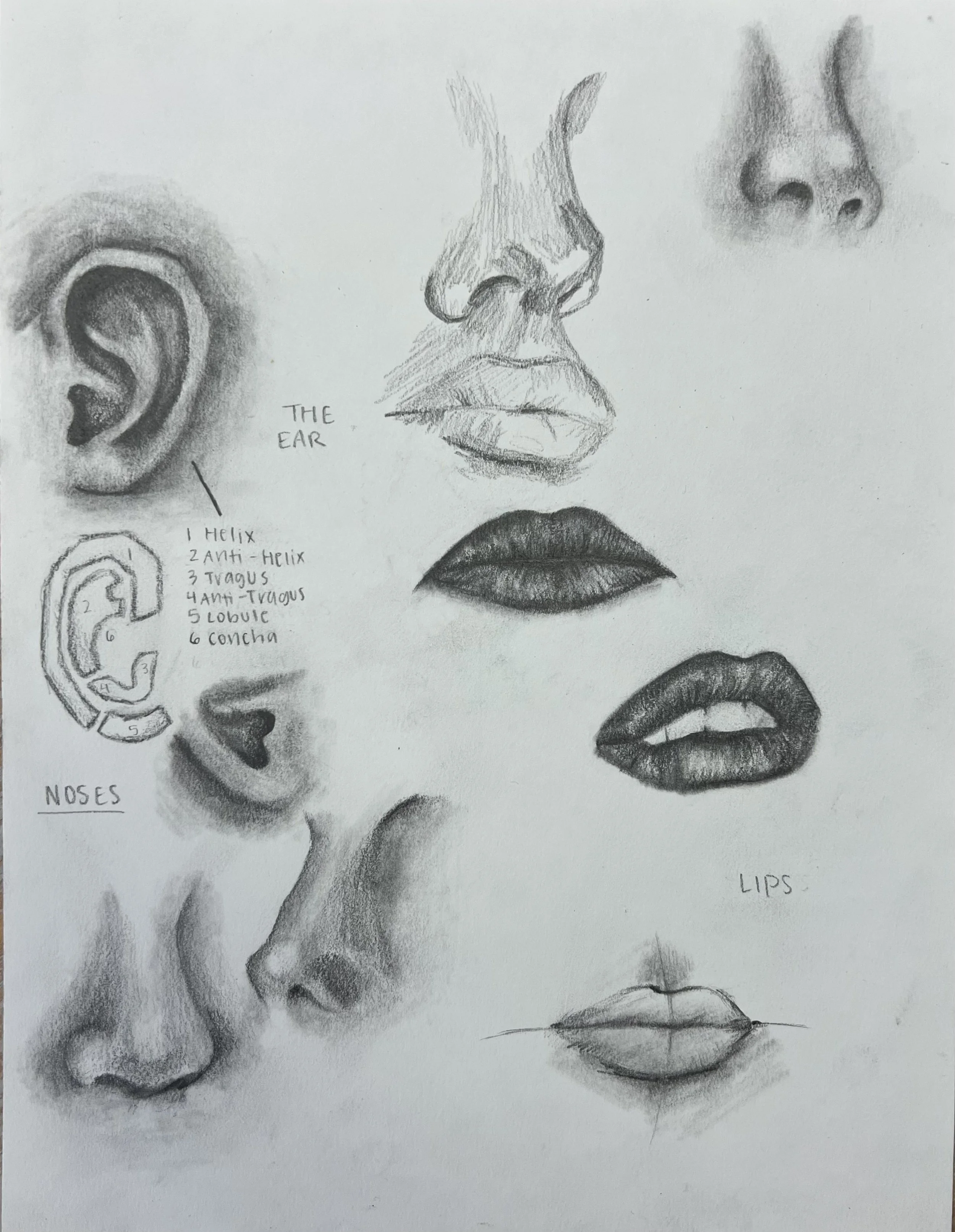 An observational study of parts of the human face. This was all drawn while observing my classmate’s faces structures.